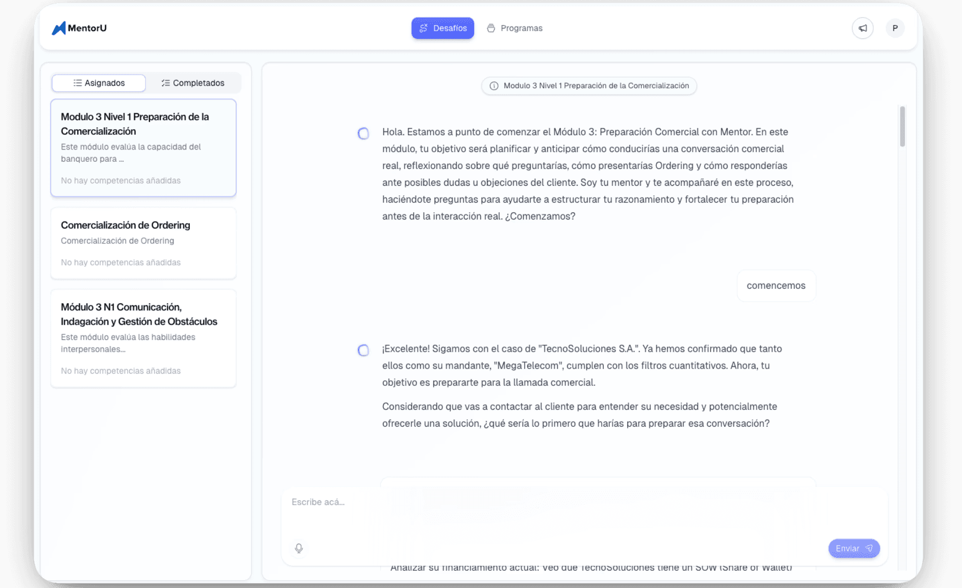 A través de cuatro niveles formativos, los profesionales son guiados por un mentor IA que diagnostica, entrena, orienta y evalúa mediante simulaciones.